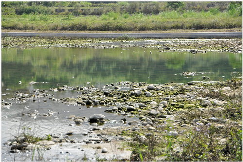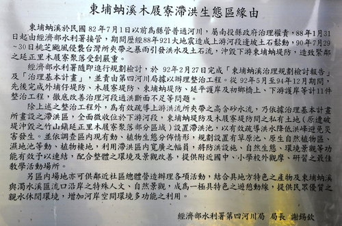 新建橋樑旁左邊不遠的一處寬闊河川綠地就是【東埔蚋溪木屐寮滯洪生態區】