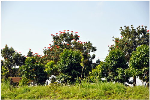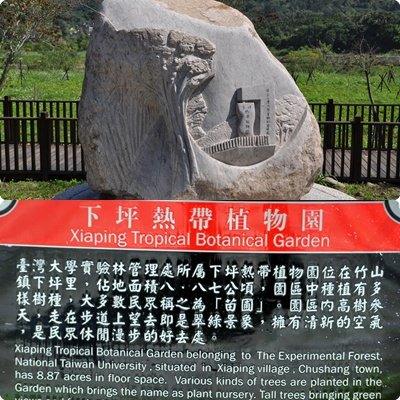 植物區 濕地池等動植物棲地外 廣植樹木 並裝置石雕作品 木棧道等景觀設施